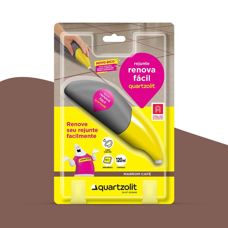 O Rejunte Renova Fácil Quartzolit Marrom Café120ml é ideal para rejunte cimentício, acrílico ou epóxi. Facilidade e praticidade para trocar a cor do rejunte.
