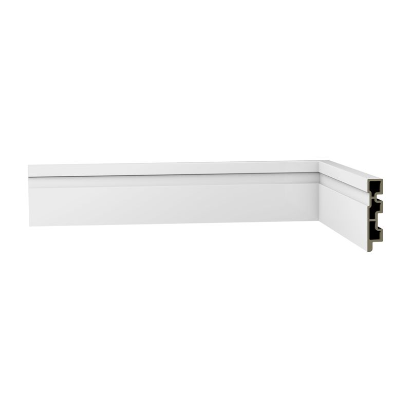 O Rodapé R9 Frisado Smart Branco Ecovale oferece ótimo custo-benefício com acabamento em PVC anti-UV, assegurando estabilidade de cor e resistência ao amarelamento. Sua superfície lisa facilita a limpeza, sendo adequada para ambientes internos e externos. Além disso, permite a passagem de fiações elétricas ou cabos de rede, sendo não inflamável.