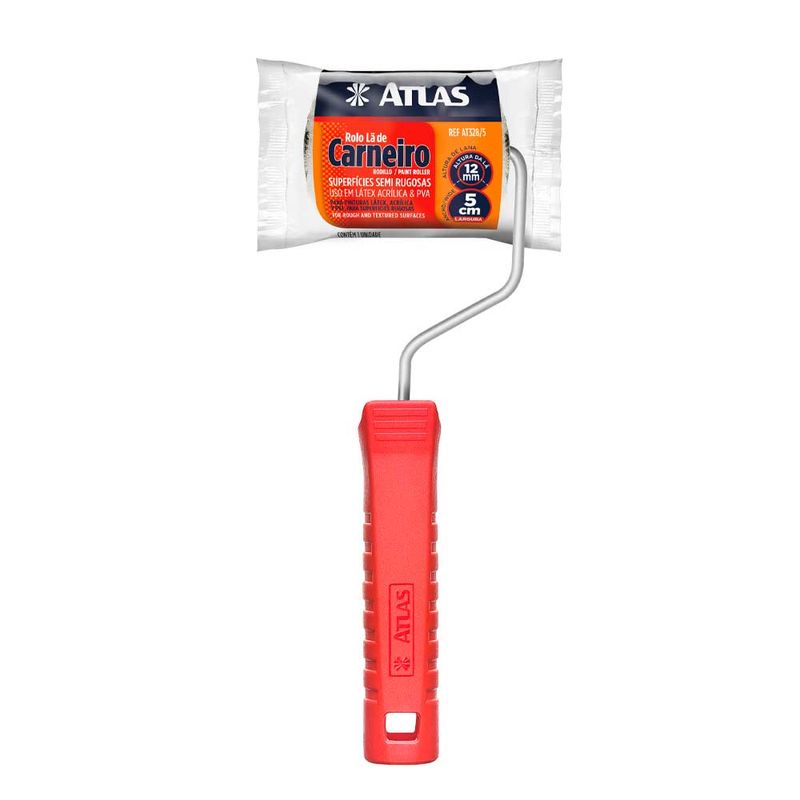 O Rolo de Lã Carneiro Parede Rugosa 5cm com Garfo Atlas At328/5 é composto 100% por lã natural tramada em tecido, manta com 12mm de altura e ideal para pinturas em superfícies lisas e semi-rugosas com tinta látex, acrílica, PVA, óleo e esmalte.