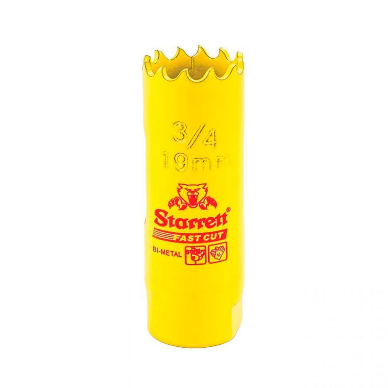 Serra Copo 19mm 3/4" Starrett Fast Cut (FCH0034-G) combina um novo material do dente com uma melhor resistência ao calor e ao desgaste. Com um design inovador dos dentes, proporcionando um corte mais rápido e mais suave para uma grande variedade de materiais quando comparadas com as serras antigas com passo constante. Ideal para o corte de chapas metálicas finas e de aço inoxidável. A serra copo Fast Cut também cortam tubos com espessura de parede até 3mm (1/8").