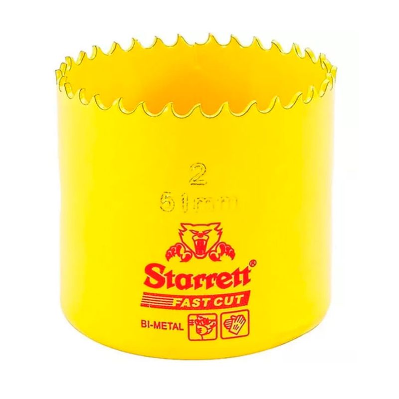 A Serra Copo Starrett 51mm é usada principalmente para cortes em materiais irregulares, tais como tubos, perfilados, chapas metálicas finas, etc.