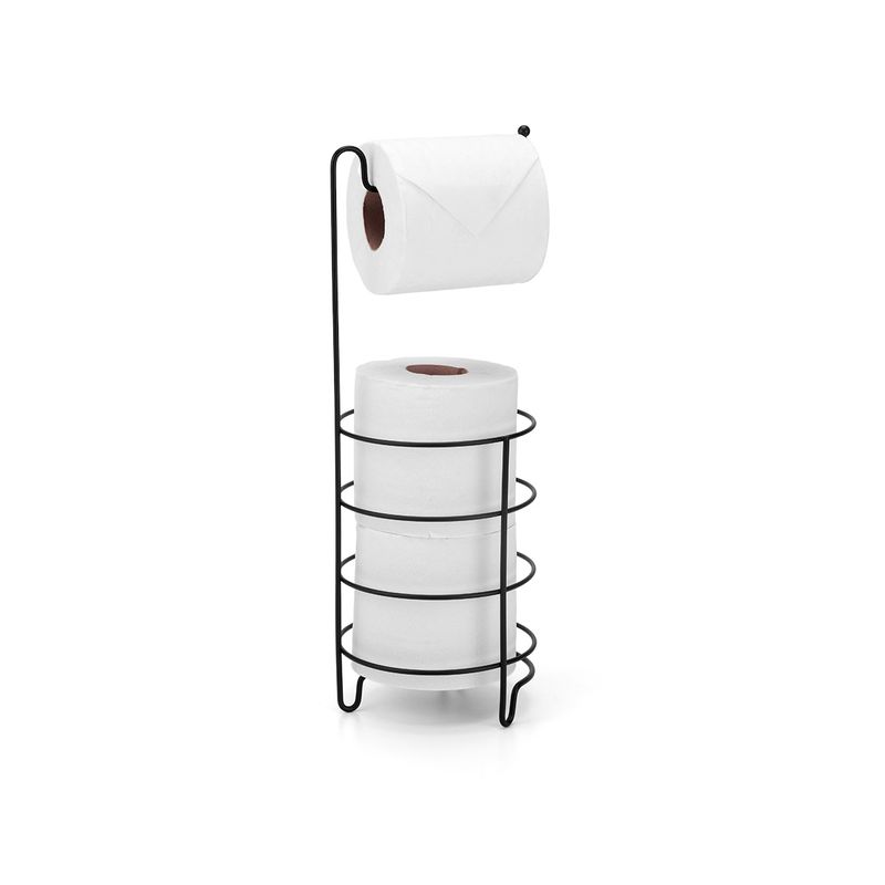 O Suporte de Chão para 4 Papel Higiênico Black Arthi é um produto que auxilia na organização do banheiro para que se aproveite melhor o espaço sem a necessidade de fazer furos na parede ou azulejo. Feito em aço com acabamento preto e comporta até 3 rolos de papel.
