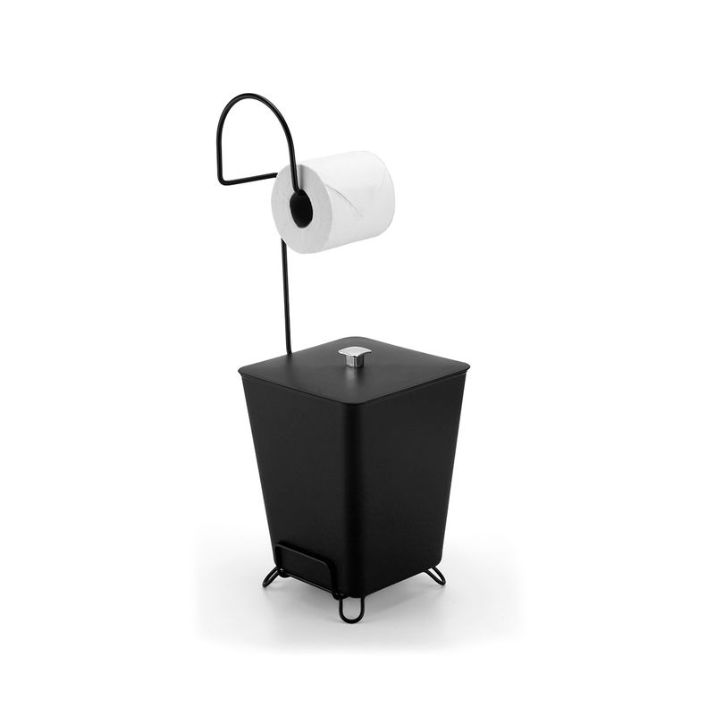 01- Suporte para Papel Higiênico com Lixeira 7L Aramado Black Arthi