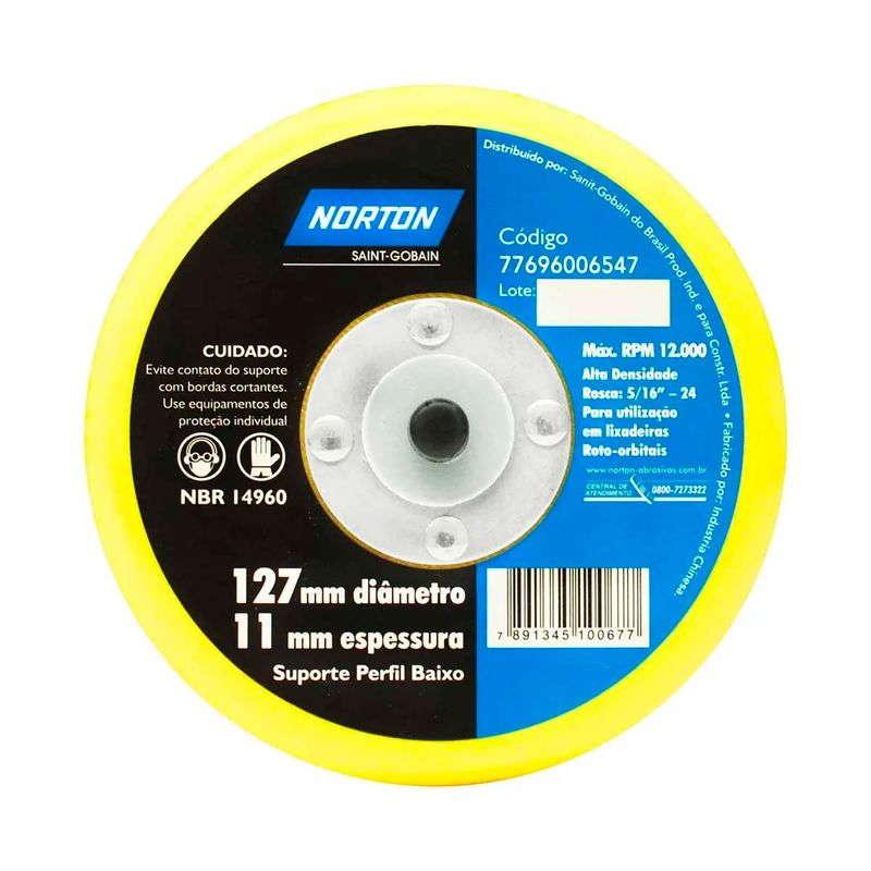O Suporte Speed-Grip Sem Furo Norton 127mm é essencial para fixação segura de discos abrasivos em lixadeiras roto-orbitais. Com sistema de aderência tipo velcro, garante trocas rápidas e eficientes, otimizando o tempo de trabalho. Sua base resistente assegura firmeza e estabilidade durante o lixamento. Ideal para uso profissional em madeira, metal ou repintura automotiva.