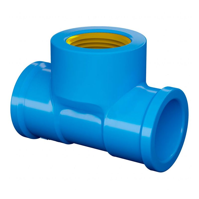 O Tê 90° Soldável com Bucha de Latão PVC Fortlev NBR 5648 Azul é a conexão ideal para a instalação de peças com rosca metálica, como torneiras, chuveiros e engates. Fabricado em PVC na cor azul, possui um inserto de latão na rosca e suporta até 7,5Kgf/cm² ou 75 m.c.a. à temperatura de 20°C. Compõe o Sistema Predial de Água Fria Fortlev que apresenta um conjunto de tubulações e conexões, cuidadosamente desenvolvidas conforme norma ABNT NBR 5648, para conduzir água potável à temperatura ambiente até os pontos de utilização.