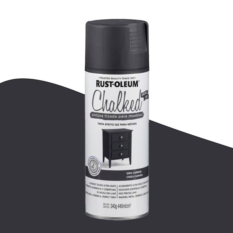 A Tinta Spray Chalked Rust Oleum Cinza Carvão proporciona uma finalização extremamente fosca com excelente aderência e cobertura em uma fórmula de spray de fácil aplicação. Renova móveis e decorações com um toque de elegância atemporal. Permite personalização através de pintura ou desgaste, conferindo a cada projeto uma aparência única com um toque vintage.