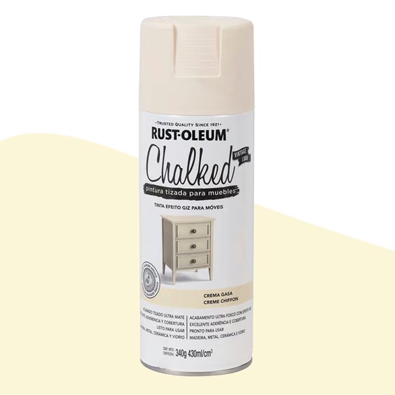 A Tinta Spray Chalked Rust Oleum Creme proporciona uma finalização extremamente fosca com excelente aderência e cobertura em uma fórmula de spray de fácil aplicação. Renova móveis e decorações com um toque de elegância atemporal. Permite personalização através de pintura ou desgaste, conferindo a cada projeto uma aparência única com um toque vintage.