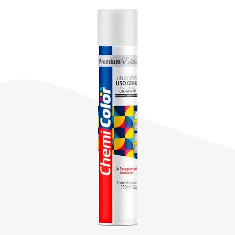 A Tinta Spray Uso Geral Branco Chemicolor é um produto de alta qualidade, indicado para pintar diferentes ambientes, tanto internos quanto externos. Levando em conta e respeitando o tratamento de cada superfície antes de aplicar, pode ser utilizado em diversas superfícies, como metais, vime, gesso e outros.