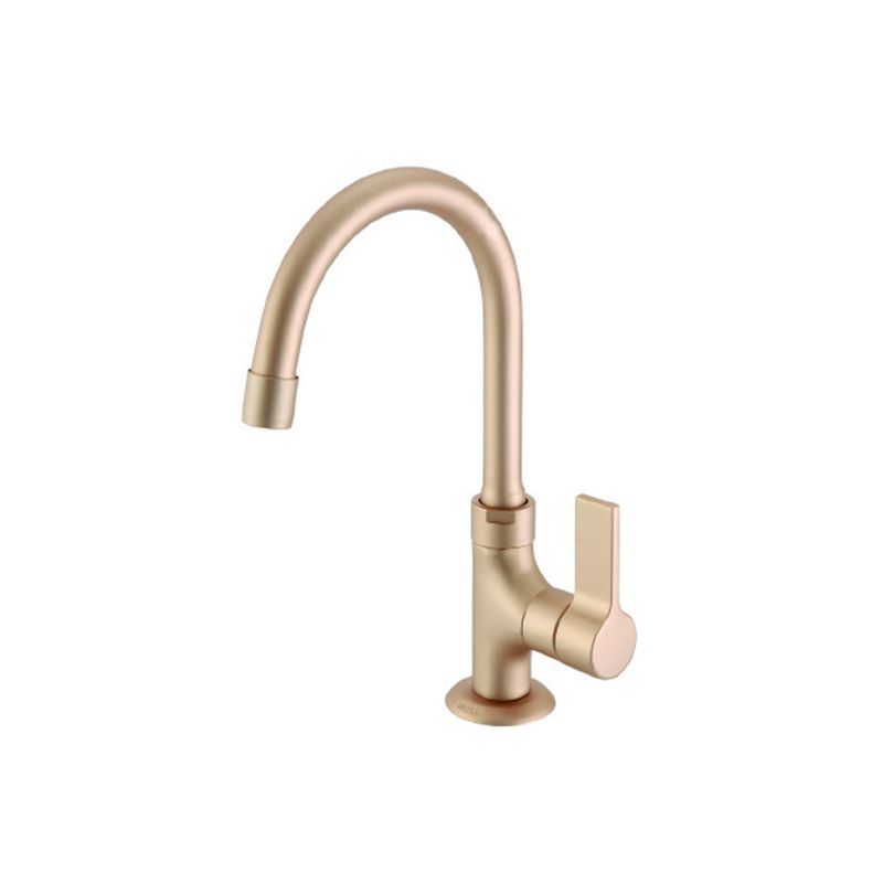 A Torneira de Mesa para Lavatório Atria Meber Dourado Matte é uma escolha sofisticada para elevar o estilo do seu banheiro. Seu design refinado, combinado com o acabamento dourado matte, proporciona um toque elegante e contemporâneo. Instalada na bancada, destaca-se como peça central, adicionando sofisticação ao espaço.