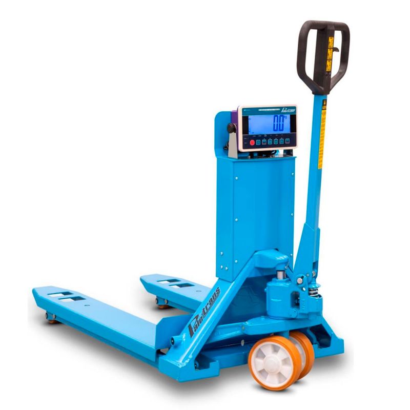 A Transpalete Balança Com Impressora 700mm X 1.150mm TM2000B Paletrans possui capacidade de carga de até duas toneladas e utiliza quatro células eletrônicas para medir o peso da carga sobre seu garfo. Ao contrário das balanças fixas que exigem que o produto seja deslocado até elas, este equipamento permite que o operador leve a balança até onde a carga está, tornando o processo de pesagem mais fácil e rápido.