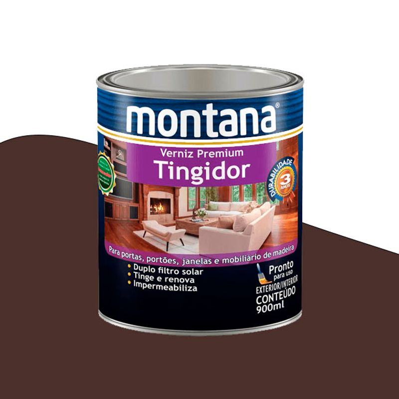 O Verniz Brilho Tingidor Montana Ipê é uma substância que permanece do lado de fora da madeira, formando uma barreira protetora e protegendo contra os danos naturais, exposição à chuva e luz solar direta, ao mesmo tempo em que altera ou realça seu aspecto natural. É indicado para dar cor às madeiras novas e renovar e impermeabilizar superfícies de madeira aplainadas, lixadas ou rústicas.