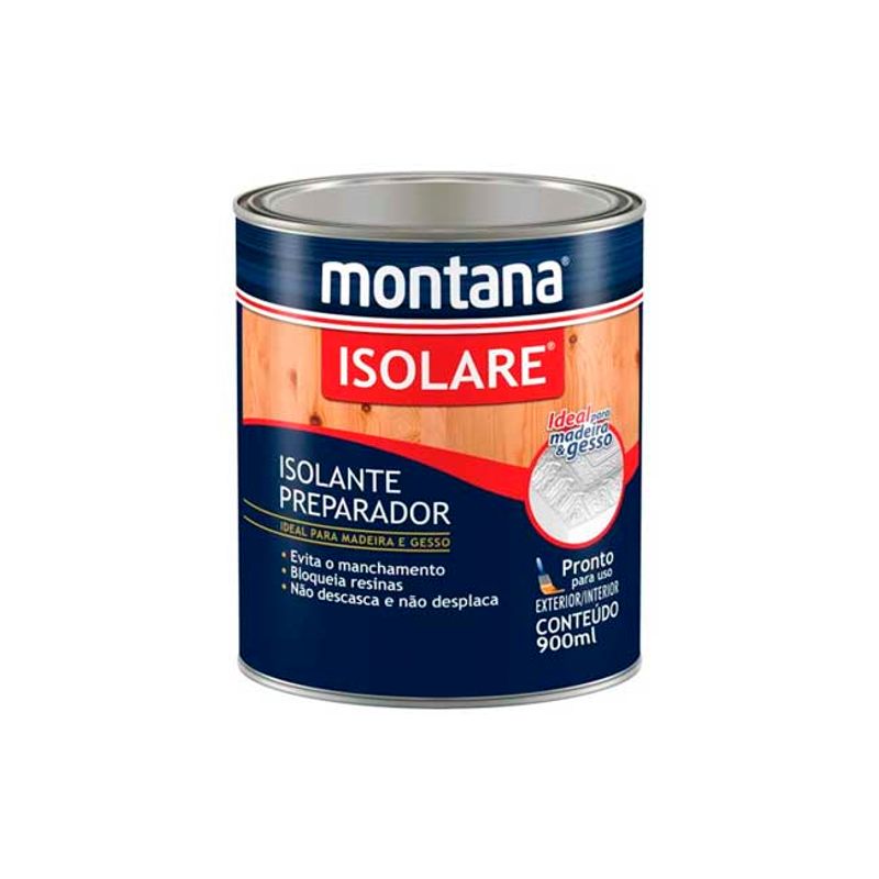O Verniz Isolante Preparador Isolare Montana é um fundo reparador com base solvente que minimiza os efeitos causados pelos extrativos. É recomendado para proteger e dar acabamento para materiais como ipê, nó de pinus, grápia, itaúba, cumaru, entre outras madeiras que produzem uma resina natural capaz de manchar e ruinar a superfície. Garante acabamento final nobre e acetinado em ambientes internos. Evita manchas, bloqueia resinas, não descama e não desplaca.