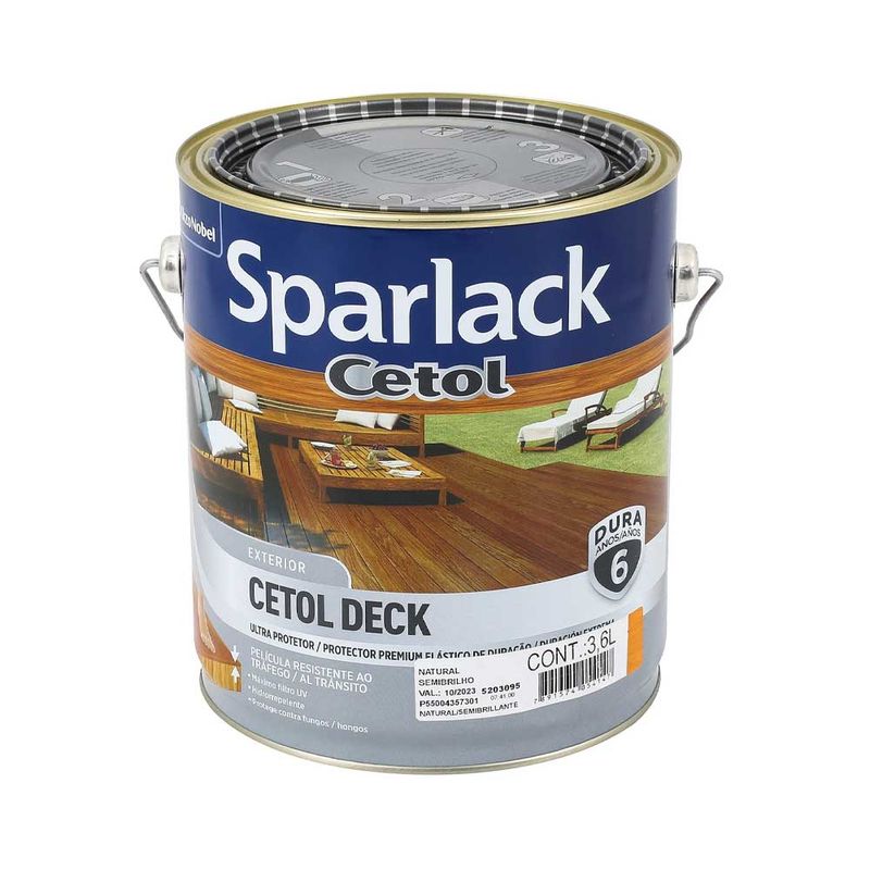 É um verniz premium incolor, que possui acabamento semibrilho, composto à base de solvente, com odor médio, o produto tem durabilidade de até 6 anos. Item da linha Cetol Deck, que já vem pronto para uso, pode ser aplicado com rolo, pincel para madeira ou pistolas para pintura.